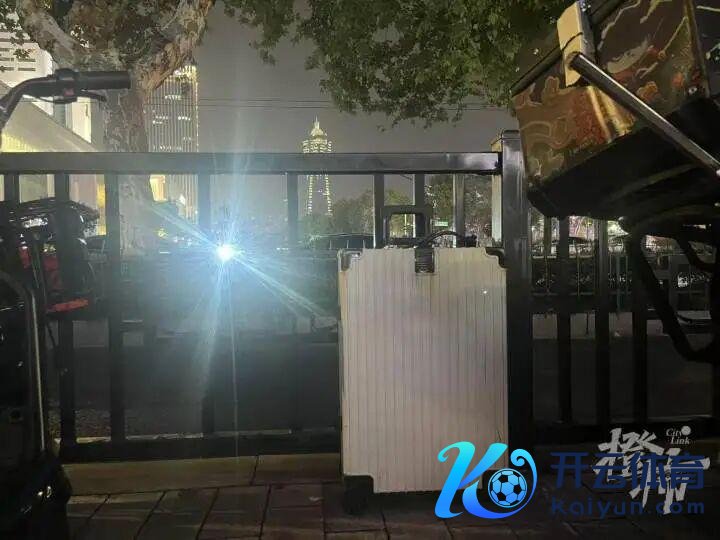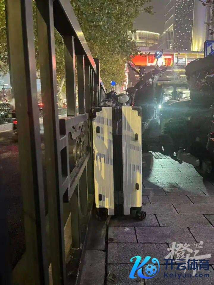 橙友发来的现场相片中,夜色里,一只白色大行李箱,孤零零地被锁在马路边的雕栏上,一边是车来车往,显得很好意思妙突兀。