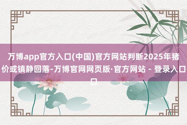 万博app官方入口(中国)官方网站判断2025年猪价或镇静回落-万博官网网页版·官方网站 - 登录入口