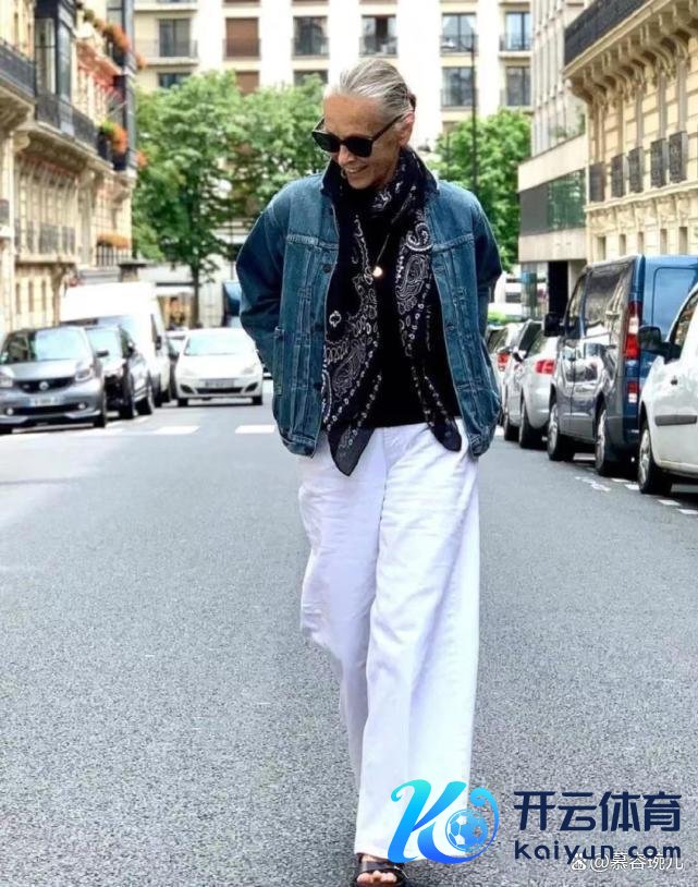 比如老奶奶身上穿的牛仔夹克和阔腿裤,安宁地让总共这个词东说念主变得很年青,何况营造出一种酷酷的前锋潮范儿,看上去十分地洋气。