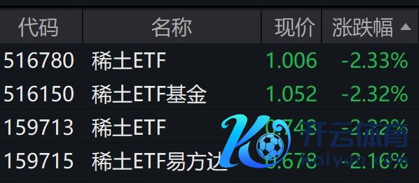 受盘面影响,追踪中证稀土产业指数的ETF跌约2%。