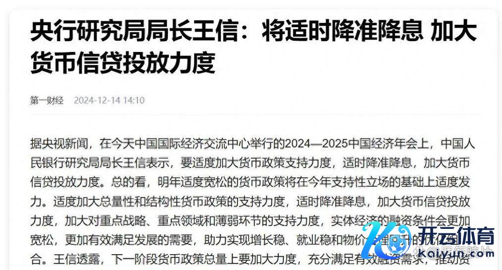 刚开完的中央经济职责会议抛出一个重磅信号 - 货币计谋转向“戒指宽松”。这一提法上一次还得回首到14年前。紧接着央行也表态欧洲杯体育,2025年会络续通过降息降准来支抓实体经济。
