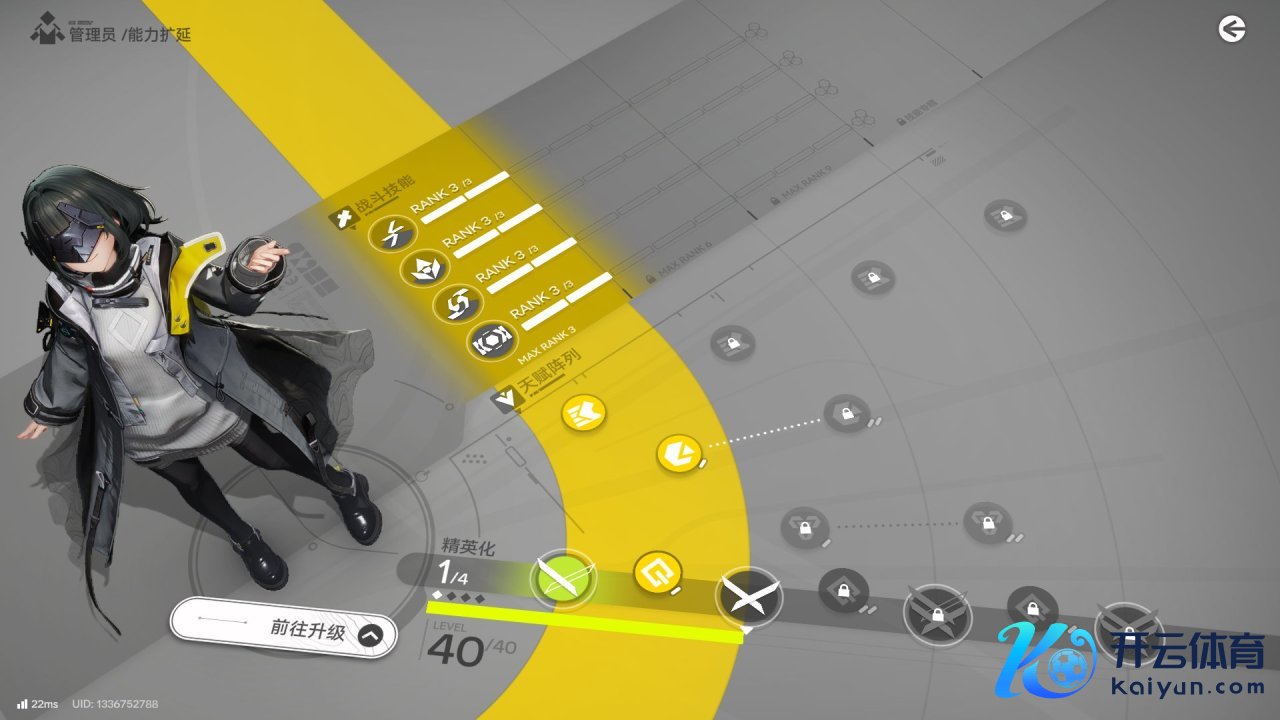 干员一共要浮松4次品级,也等于精四,最高可达到90级。每浮松一次,就会解锁两个天禀,还会解锁可戴装备的品性上限,比如一出手干员只可穿绿色品性的装备(装备≠火器),精英化后才智一稔蓝色、紫色、金色品性的装备