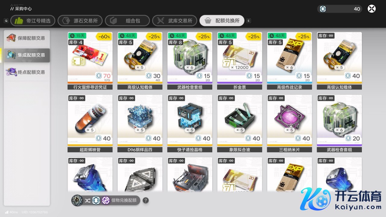 干员抽取时或满潜重迭时,可升沉为兑换所的货币,访佛明日方舟的黄绿票商店。该兑换所共有3种货币,分散是保险配额、集成配额、终点配额。以下简称为分散是红票、蓝票、紫票