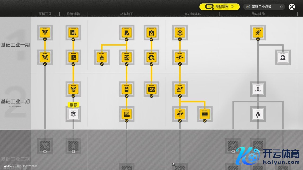 二,科技树科技树一共三本,随干线进程逐渐解锁,悉数有六大类:原料开采、物流运输、材料加工、电力中枢、战斗补助、探索补助