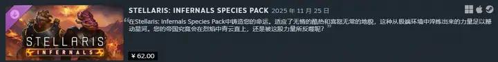 在11月25日更新的真金不怕火狱种族包,则允许玩家锻造一个生而便为在星系中最顶点的酷暑中糊口的炽热帝国。
