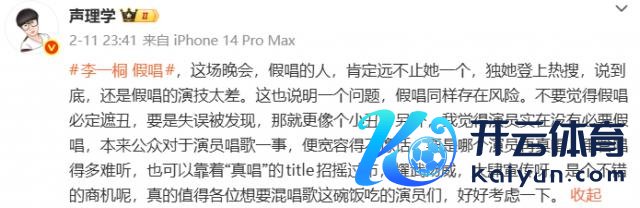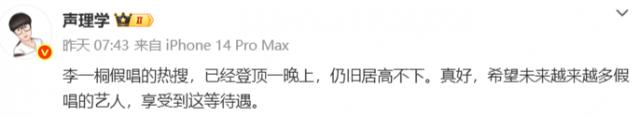 舞台发达力没的说,纯听歌俩东谈主也王人唱得可以,然则 ……# 李一桐 假唱 # 如故在热搜挂了一晚上,网友发现她有好几次没瞄准口型、歌声响起的技术发话器还没提起,算口角常泄露的假唱穿帮了。