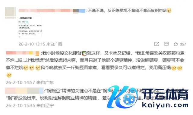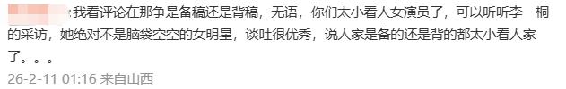 陈星旭粉丝则认为自家哥哥不背稿更古道,李一桐那番话背的是百度例句,如故卡壳、记错了的版块,就这缝隙百出的发言,还要打通稿拉踩一波共事,陈星旭才是无妄之灾、老横祸蛋了。