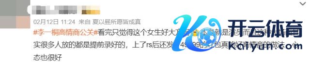 总不可网友骄横承认李一桐这波是高情商公关,粉丝就随着夸她如实"东谈主好意思心善"、"体面东谈主"、"神气大",网友认为这种作念法欠恰当,粉丝又话锋一瞥,说这根本不是公关回复,闇练网友想多了吧。