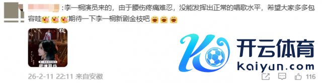 粉丝天然不可能承认李一桐这场扮演"没演好",他们只会帮偶像找补,说李一桐先是腰伤复发,走路王人需要别东谈主搀扶,还得去横店插足开机典礼,追念又连轴转飞去长沙唱歌。