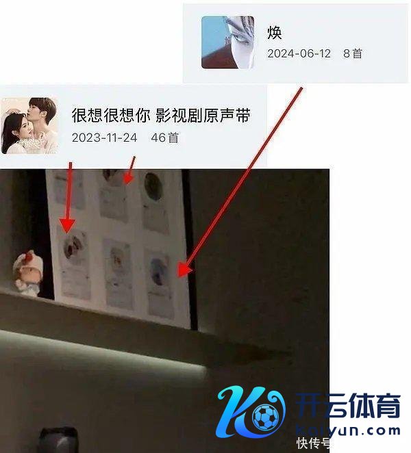 右上角挂的那幅画里,有打印出来的檀健次唱的歌,其中一张是他主演的电视剧《很想很想你》的原声碟,还有一张是他我方出的单曲。