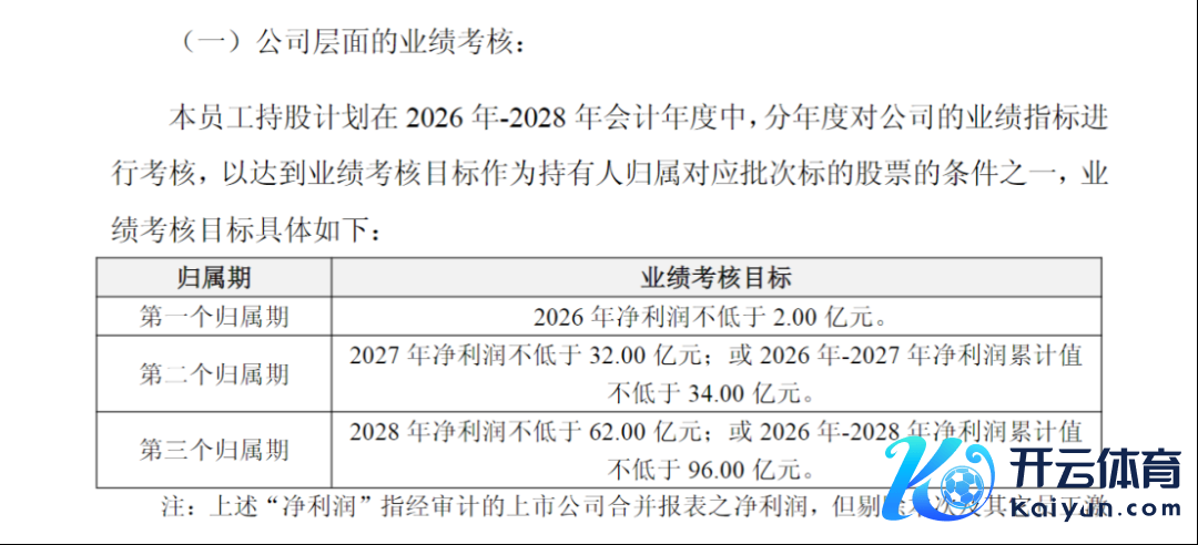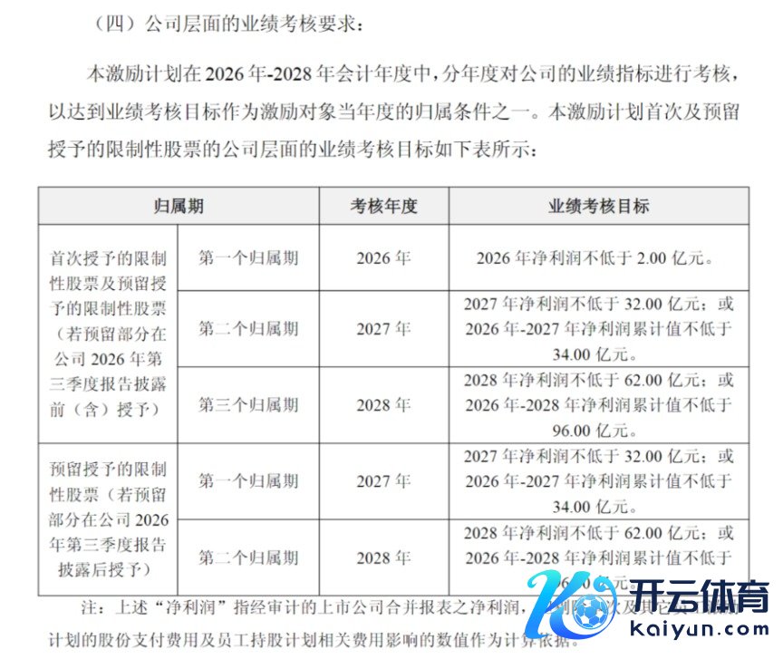 两份野心中的公司层面功绩捕快认识疏导,均为2026年净利润不低于2亿元;2027年净利润不低于32亿元,或2026年至2027年净利润累计值不低于34亿元;2028年净利润不低于62亿元,或2026年至2028年净利润累计值不低于96亿元。