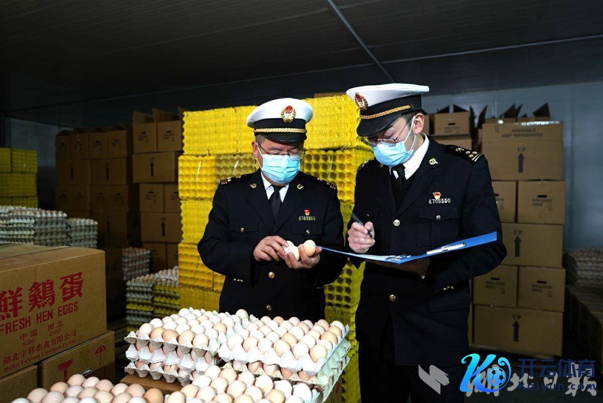 武汉海关所属荆州海关关员对出口蛋品开展放哨。
