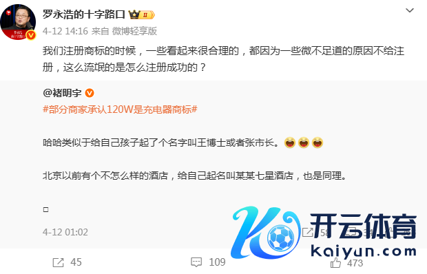 罗永浩直言:“咱们注册商办法时间,一些看起来很合理的,都因为一些微不及说念的原因不给注册,这样流氓的是怎样注册见效的?”