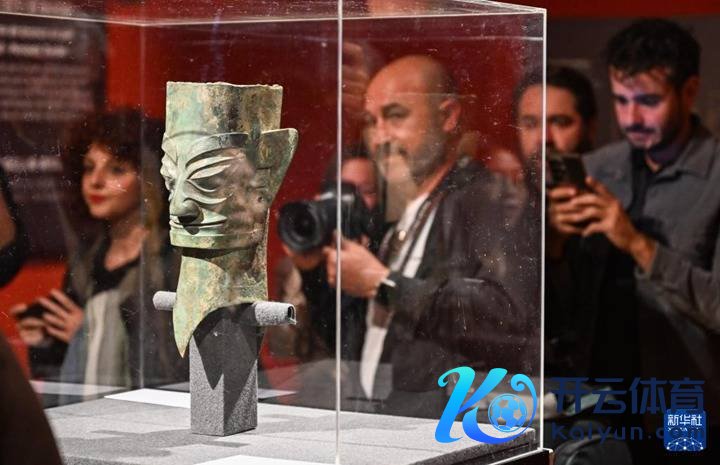 3月17日,在西班牙瓜达拉哈拉博物馆,东谈主们参不雅中国西南地区青铜文雅展上来自三星堆劳动的展品青铜东谈主头像。新华社记者 程敏 摄